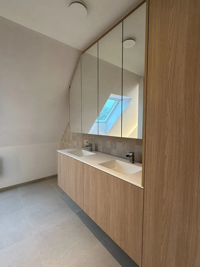 Op de 2de verdieping bevinden zich de 3 slaapkamers en prachtige badkamer met dubbele lavabo en toilet. De bergzolder is te bereiken via een zoldertrap in de gang.