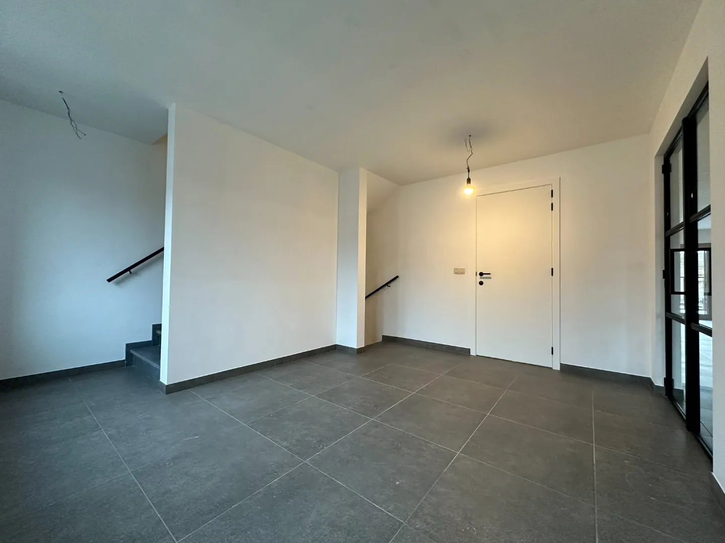 Door de smeedijzeren deur komt men in de ruime leefruimte die zowel vooraan als achteraan toegang geeft tot de terrassen. Vooraan overdekt met straatzicht en achteraan een mooi zonneterras.