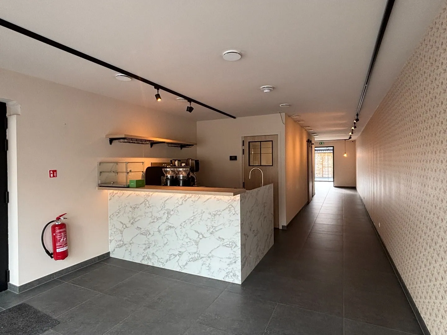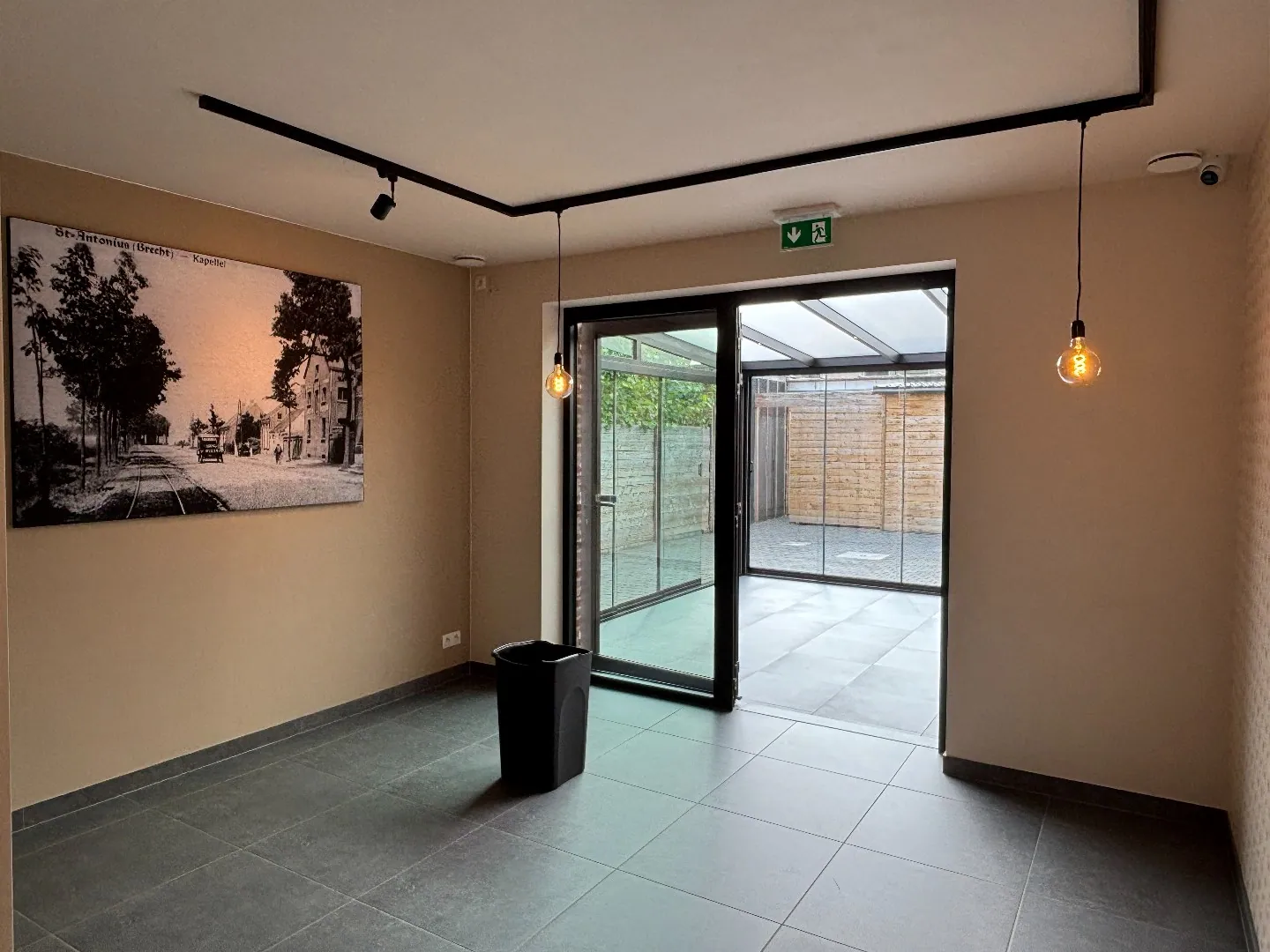 Instapklaar handelsgelijksvloers 90 m² met ruim terras in het centrum Sint-Antonius naast Bpost.