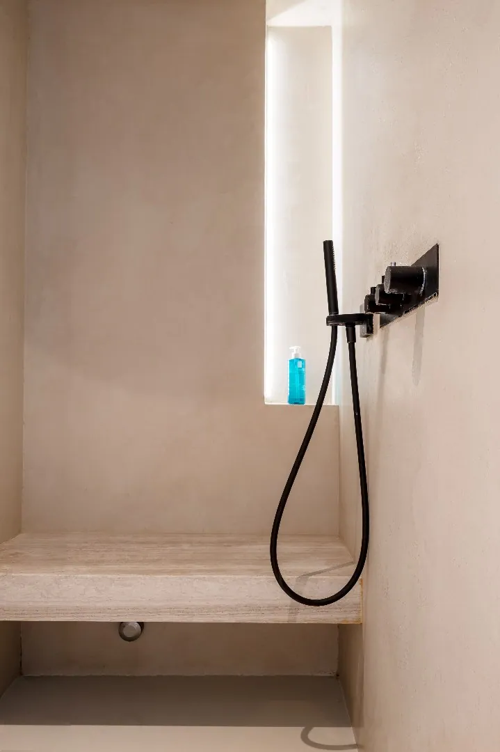 De hoofdslaapkamer is een echte privésuite met eigen dressing en luxueuze badkamer, uitgerust met vrijstaand bad en inloopdouche met hamamfunctie. Ook de tweede slaapkamer ... beschikt over een eigen badkamer en ademt een exclusief hotelgevoel.