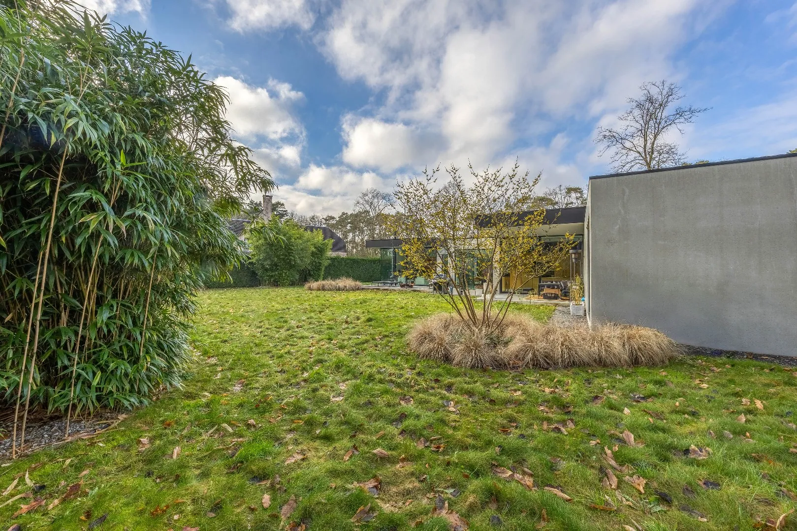 - Volledig omheinde tuin met automatische poort, sproei-installatie en buitenverlichting