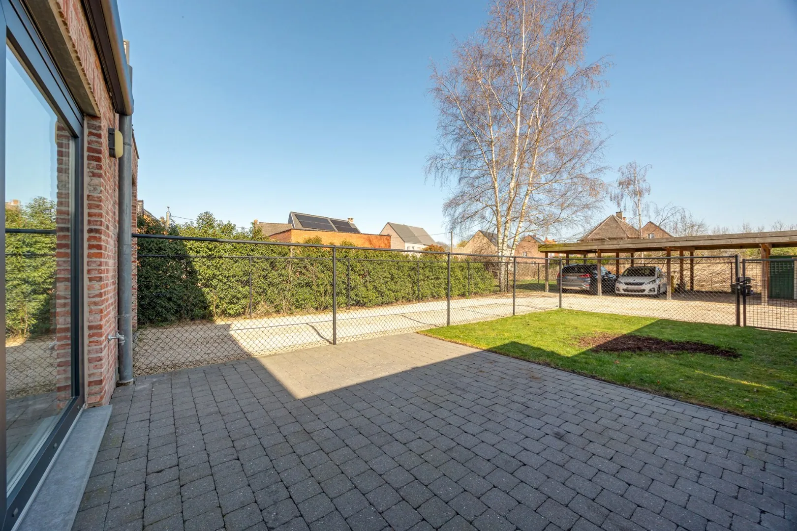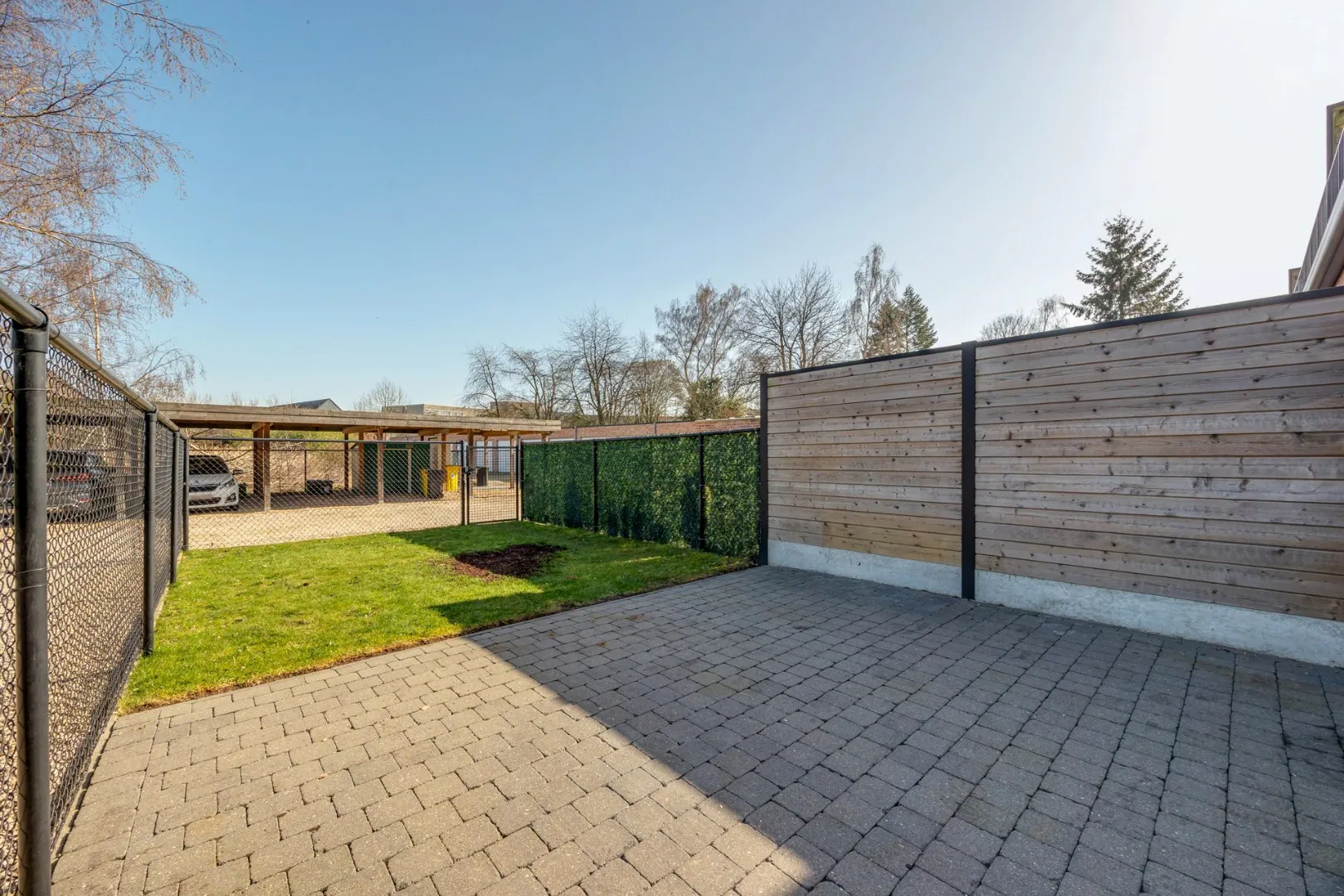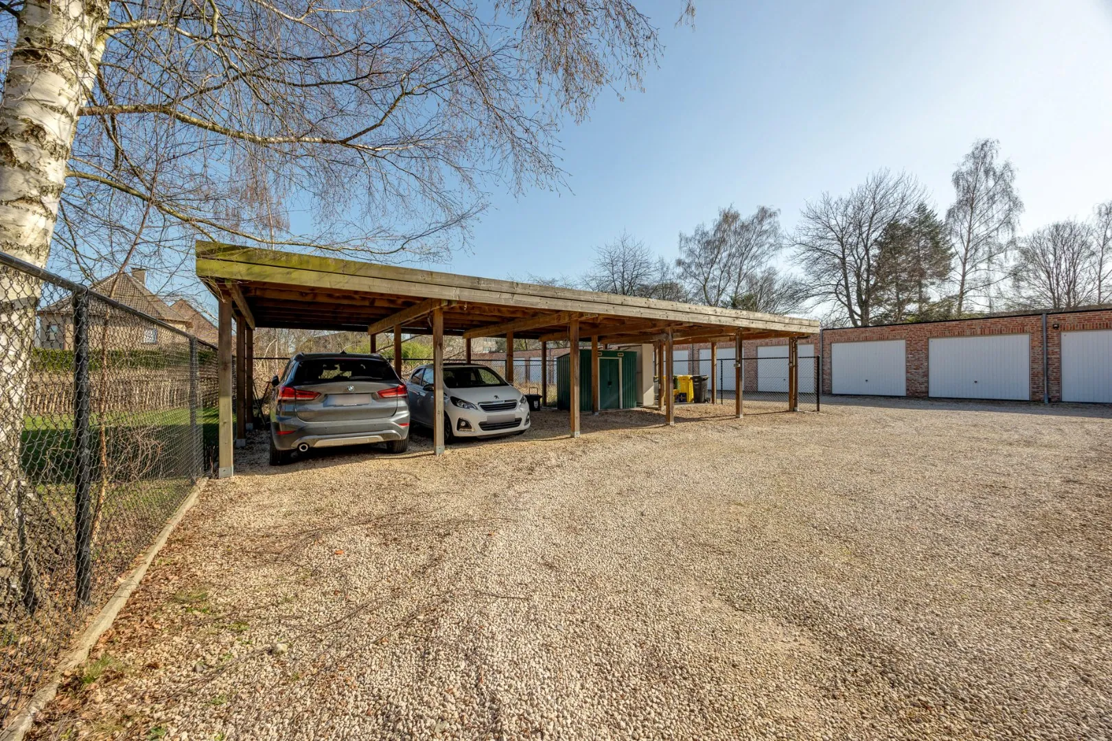 Achteraan het perceel bevindt zich een carport, bereikbaar via de tuin. Deze is verplicht mee aan te kopen voor €20.000.