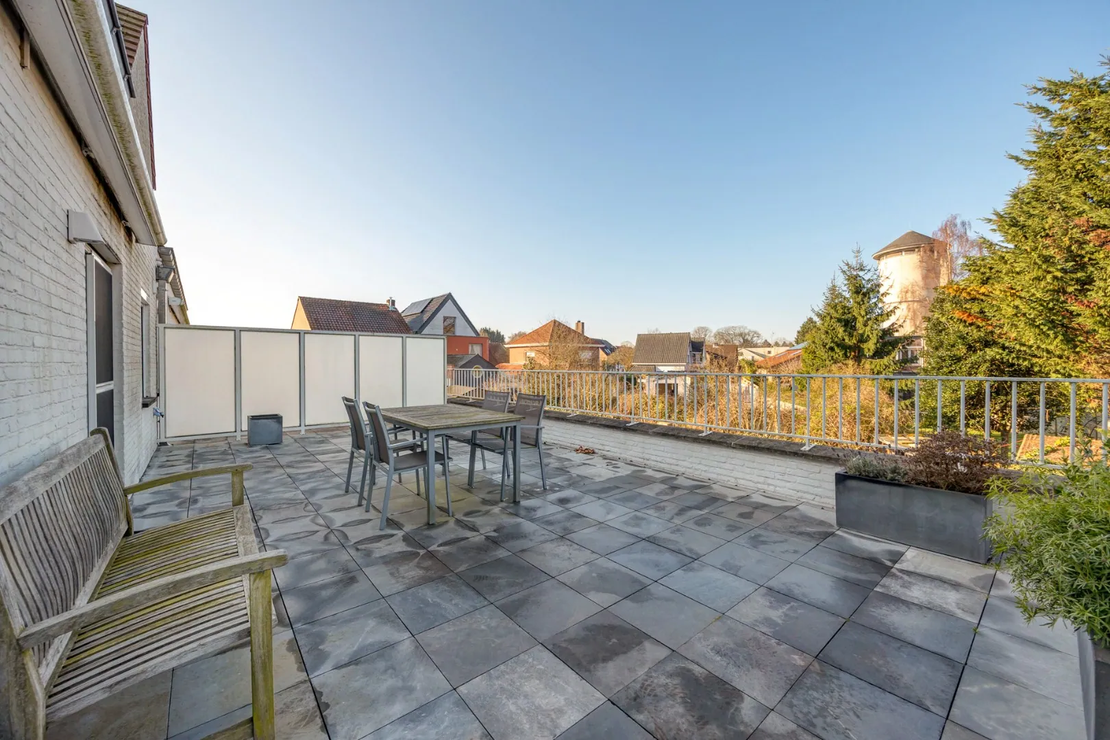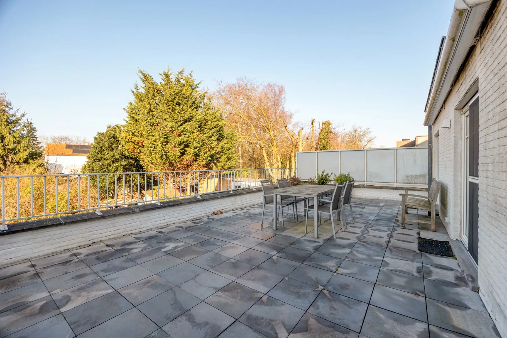 Vanuit de leefruimte heeft u toegang tot het absolute pronkstuk van dit appartement: een zeer ruim terras van maar liefst 36 m² met westelijke oriëntatie. Hier kunt u heerlijk genieten van de namiddag- en avondzon.