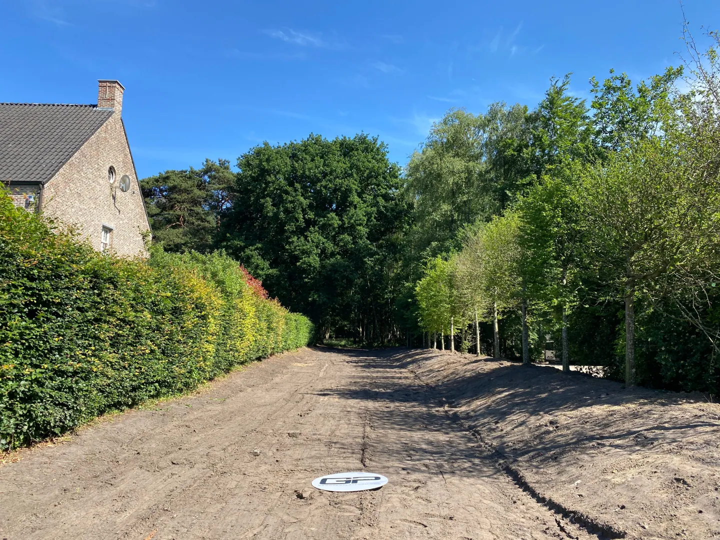 - Max 5% van het perceel mag verhard worden met uitzondering van verhardingen voor opritten