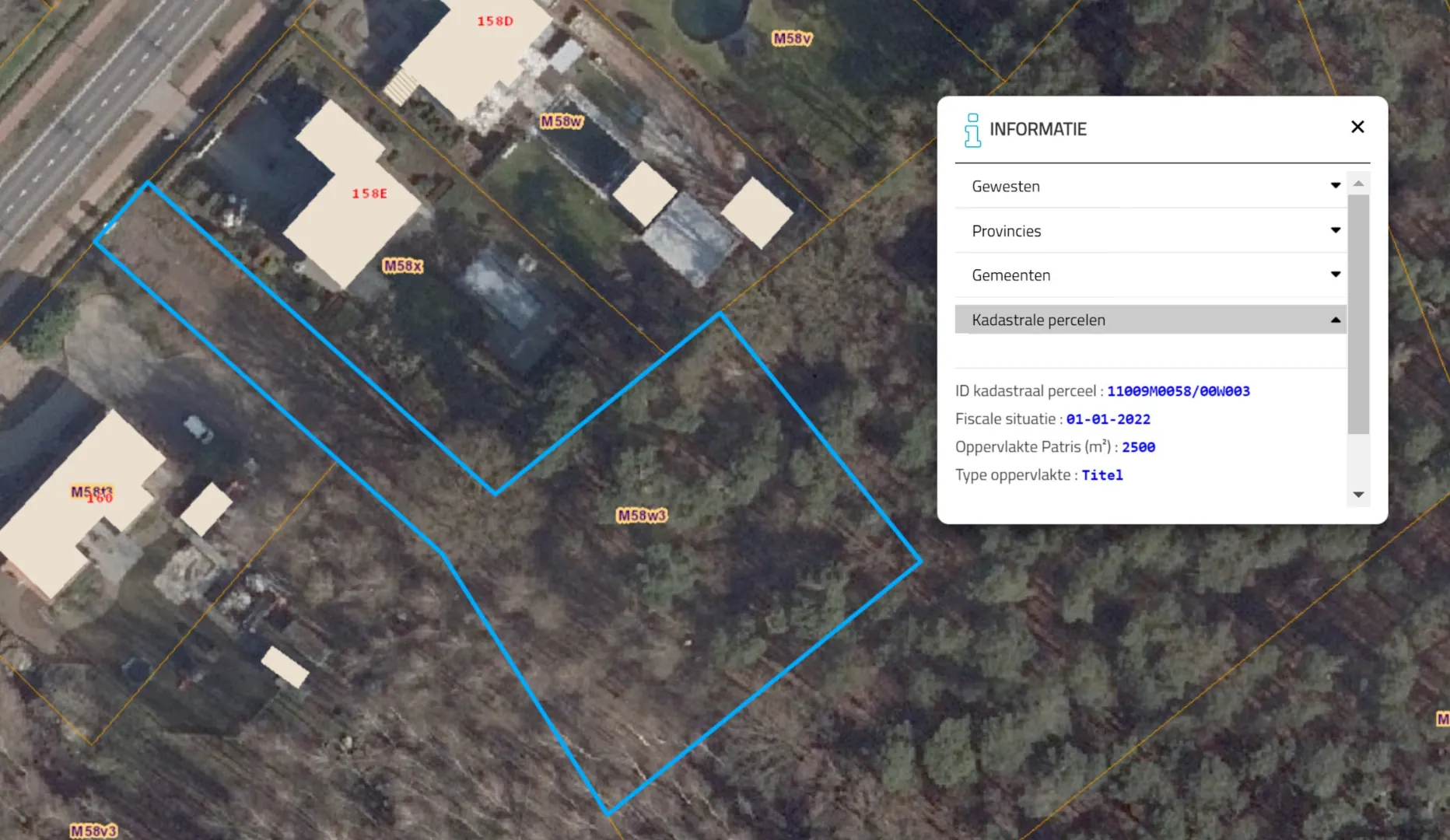 eengezinswoning te Schotensteenweg 158f, 2960 Brecht, kadasternummer (afd. 1) sectie M 58 W3