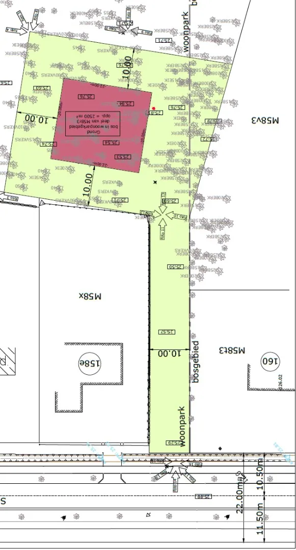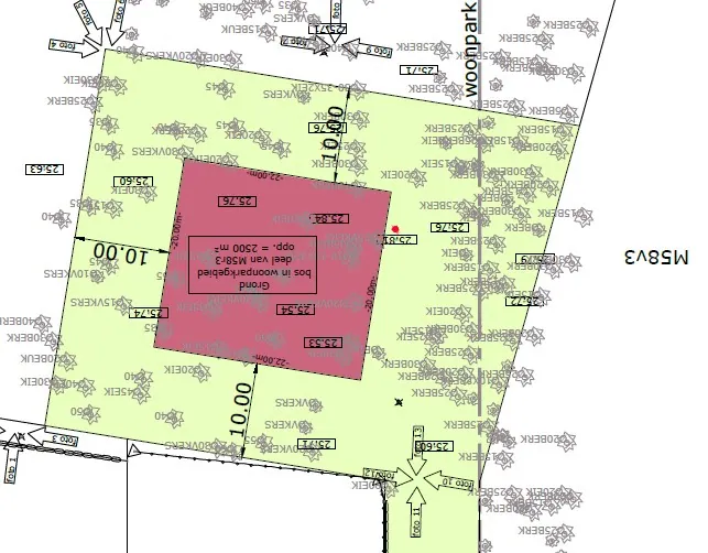 Op dit perceel mag een eigendom gebouwd worden van 250 m² bebouwde oppervlakte (footprint)