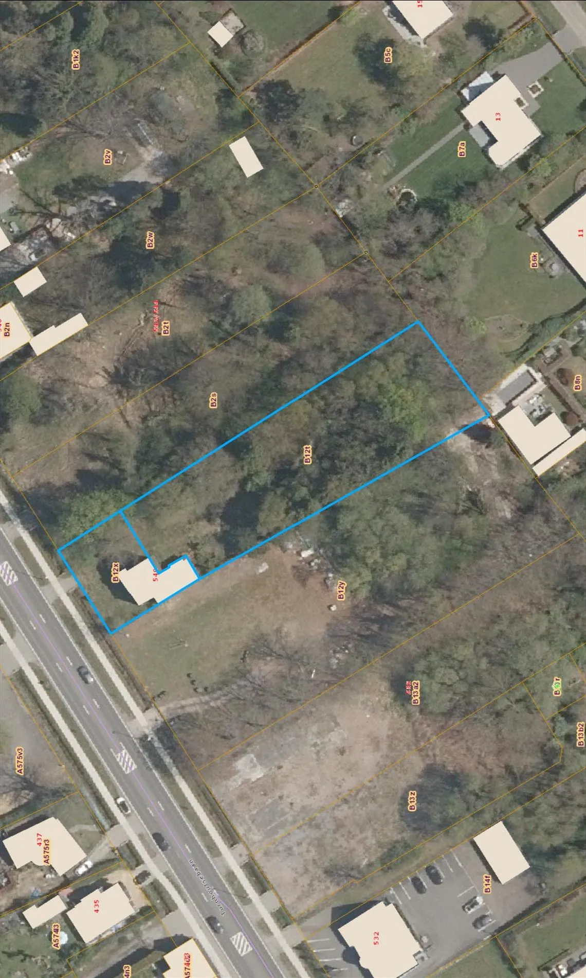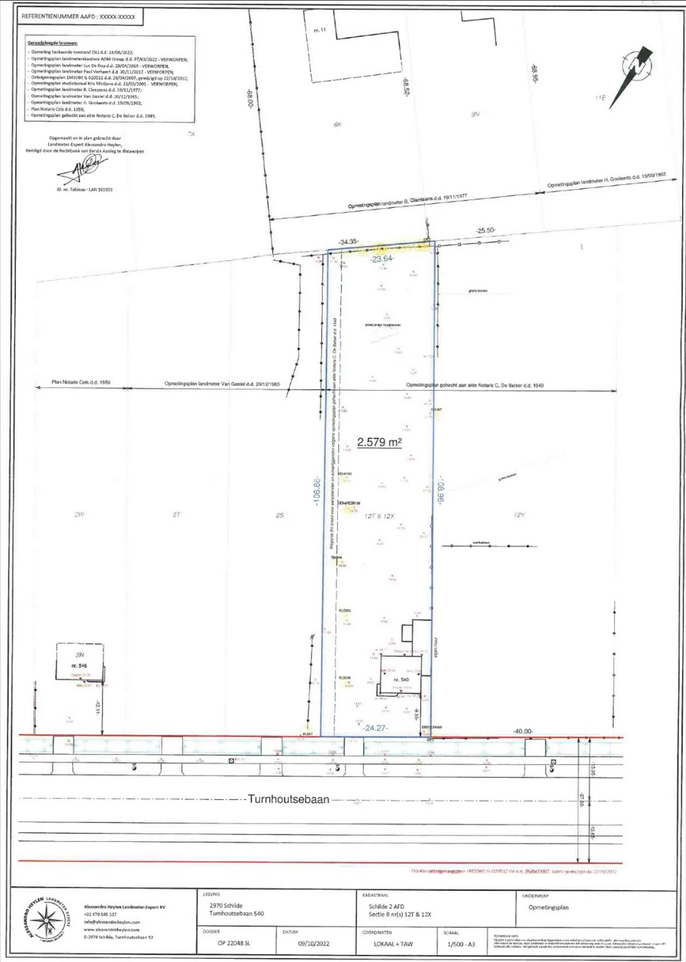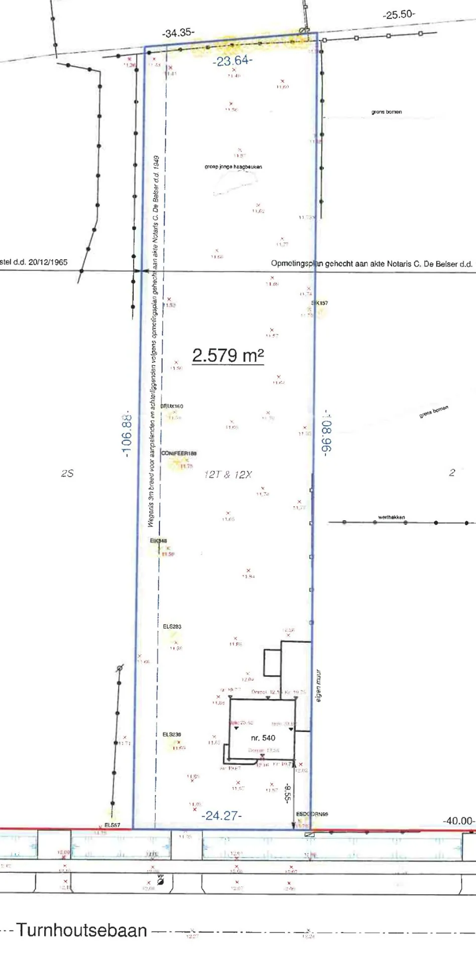 Projectgrond op een perceel van 2.579 m² met 24 meter straatbreedte.
