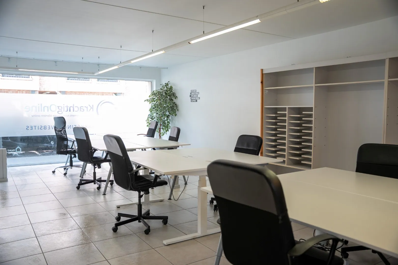 De ruimte omvat een lichtrijke en ruime winkel- of kantoorruimte, aangevuld met een praktisch privatief gedeelte met toilet en kitchenette. Verder is er een aparte berging van 8 m² aanwezig.