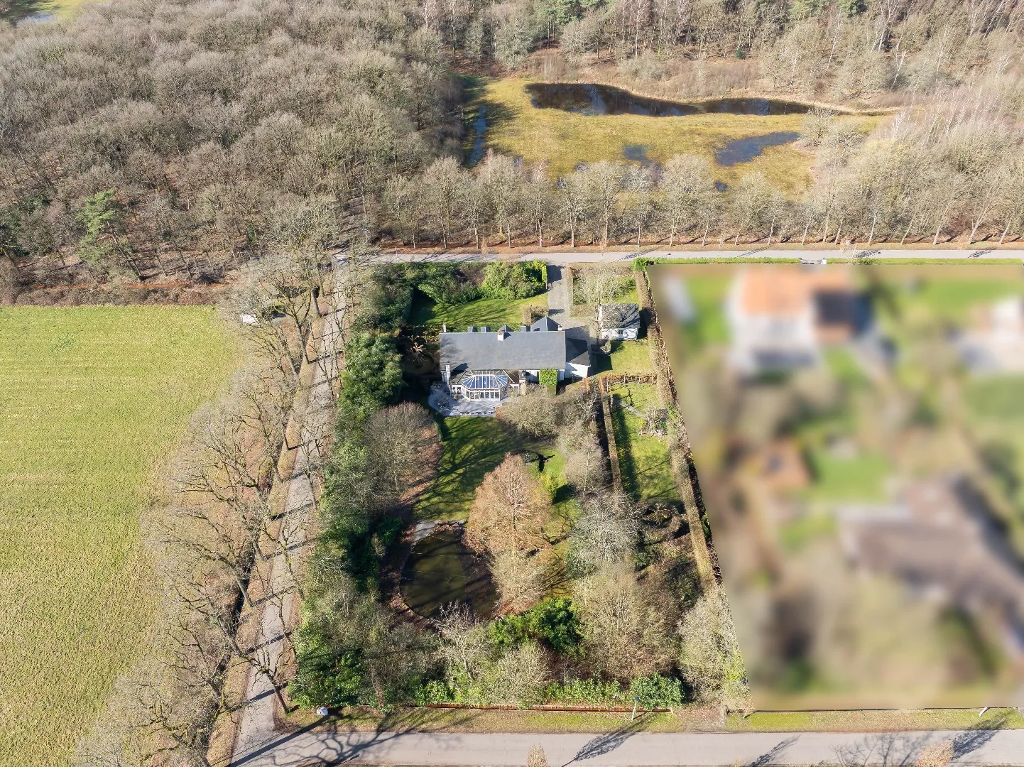 Het perceel van 4.974 m² bestaat uit twee bouwgronden, waardoor het achterste gedeelte in de toekomst eventueel kan worden benut voor de bouw van een extra woning. Met een straatbreedte van meer dan 50 meter geniet u bovendien van een uitzonderlijk ruimtelijk gevoel.
