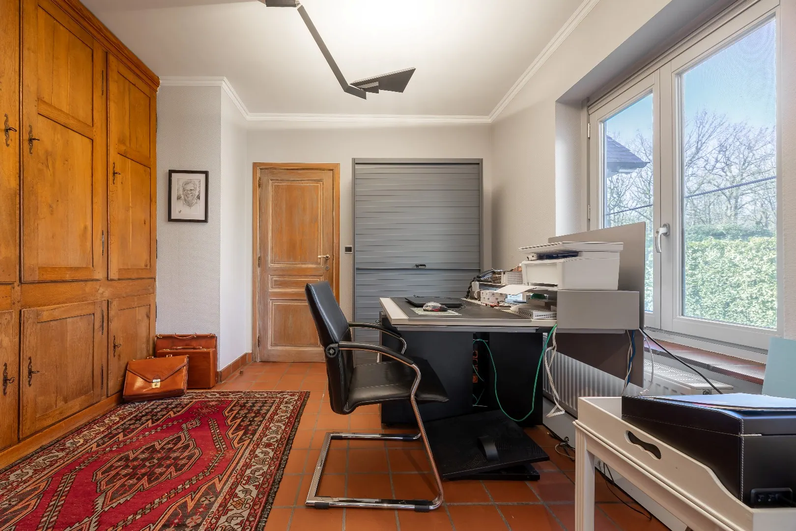 Op het gelijkvloers vindt u verder nog een ruime bureauruimte aan de voorzijde van de woning, perfect geschikt als praktijkruimte of voor wie comfortabel van thuis wil werken. Daarnaast beschikt de woning op dit niveau over een slaapkamer met ensuite badkamer, een praktische wasruimte en een inpandige garage met automatische poort.
