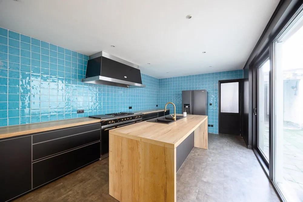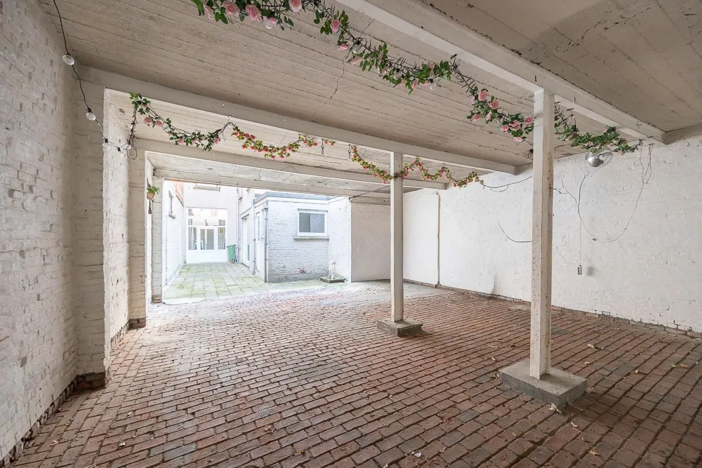 Achter de authentieke koetspoort bevindt zich de inkomhal en een charmante binnenkoer met stadstuin. De leefruimte vloeit door naar de eetkamer en een volledig vernieuwde, op maat gemaakte keuken met een stijlvol Lacanche-fornuis. Aansluitend vind je een badkamer met douche en toilet, een ruime berging/wasplaats en toegang tot de tuin met overdekt terras.