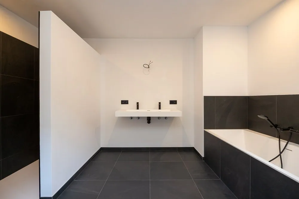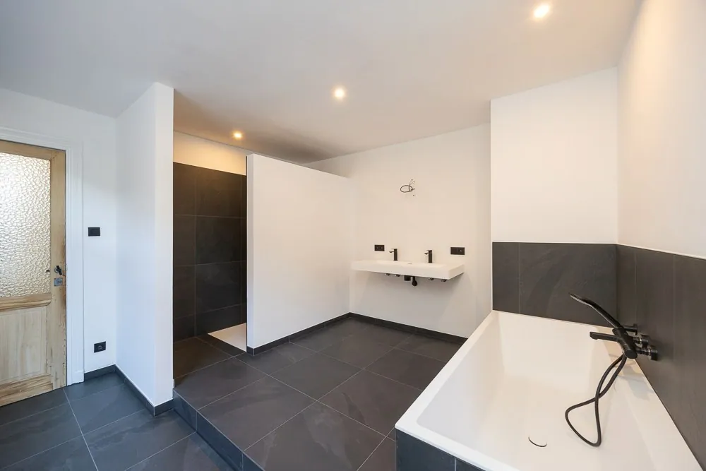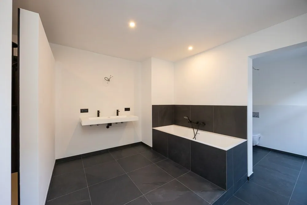 Op de eerste verdieping wachten twee ruime slaapkamers met dressing en een luxueuze badkamer met inloopdouche, ligbad, dubbele lavabo en toilet. De tweede ... verdieping biedt opnieuw twee slaapkamers, met dressing, een apart toilet en uitbreidingsmogelijkheden. De bovenste verdieping is ingericht als studio met eigen keuken en leefruimte, perfect als extra woonunit of om nog een of 2 slaapkamers te creëren. Een volledig betegelde kelder zorgt voor extra bergruimte.