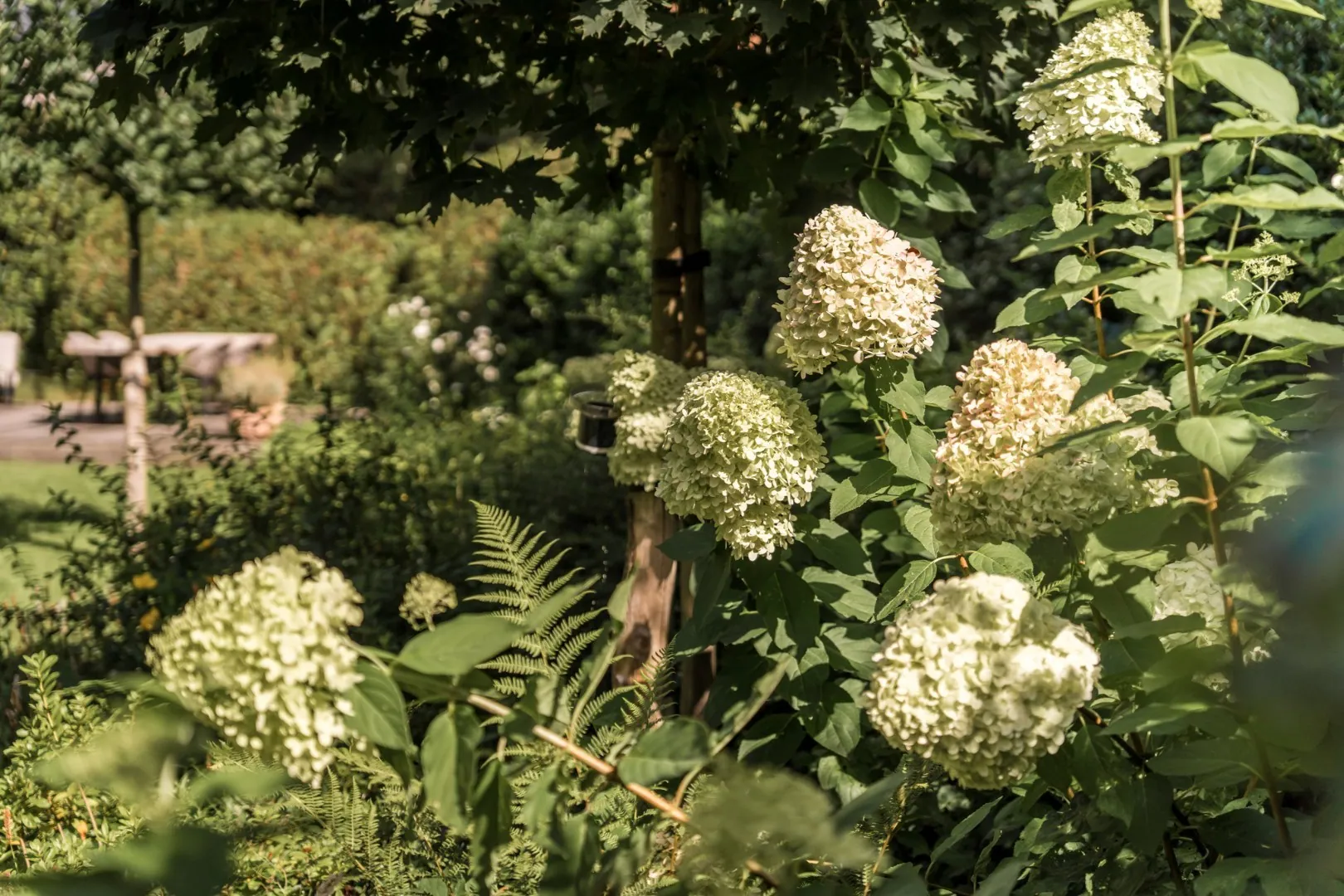 De woning wordt omringd door een volwassen, kleurrijk aangelegde tuin die rust en privacy biedt.