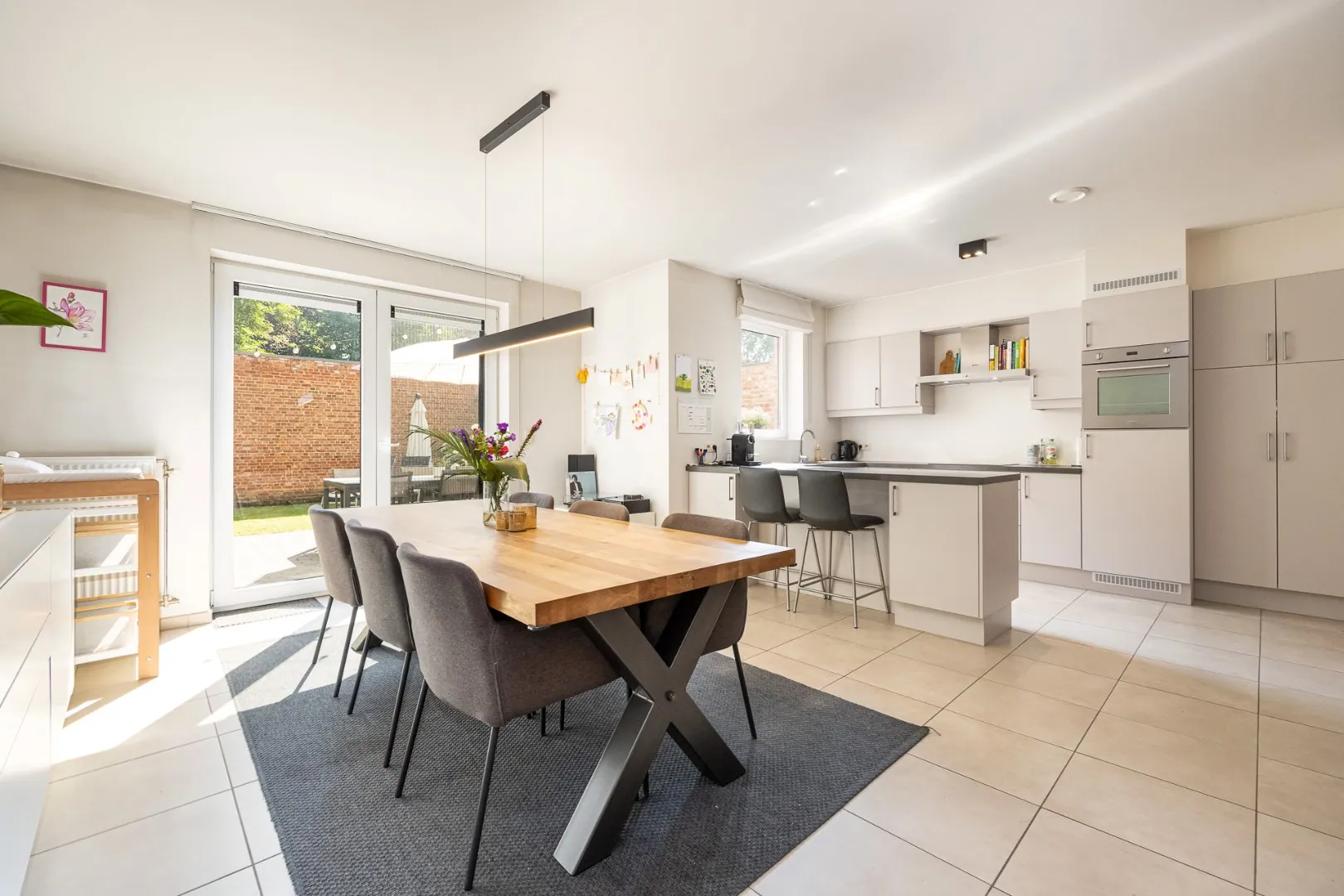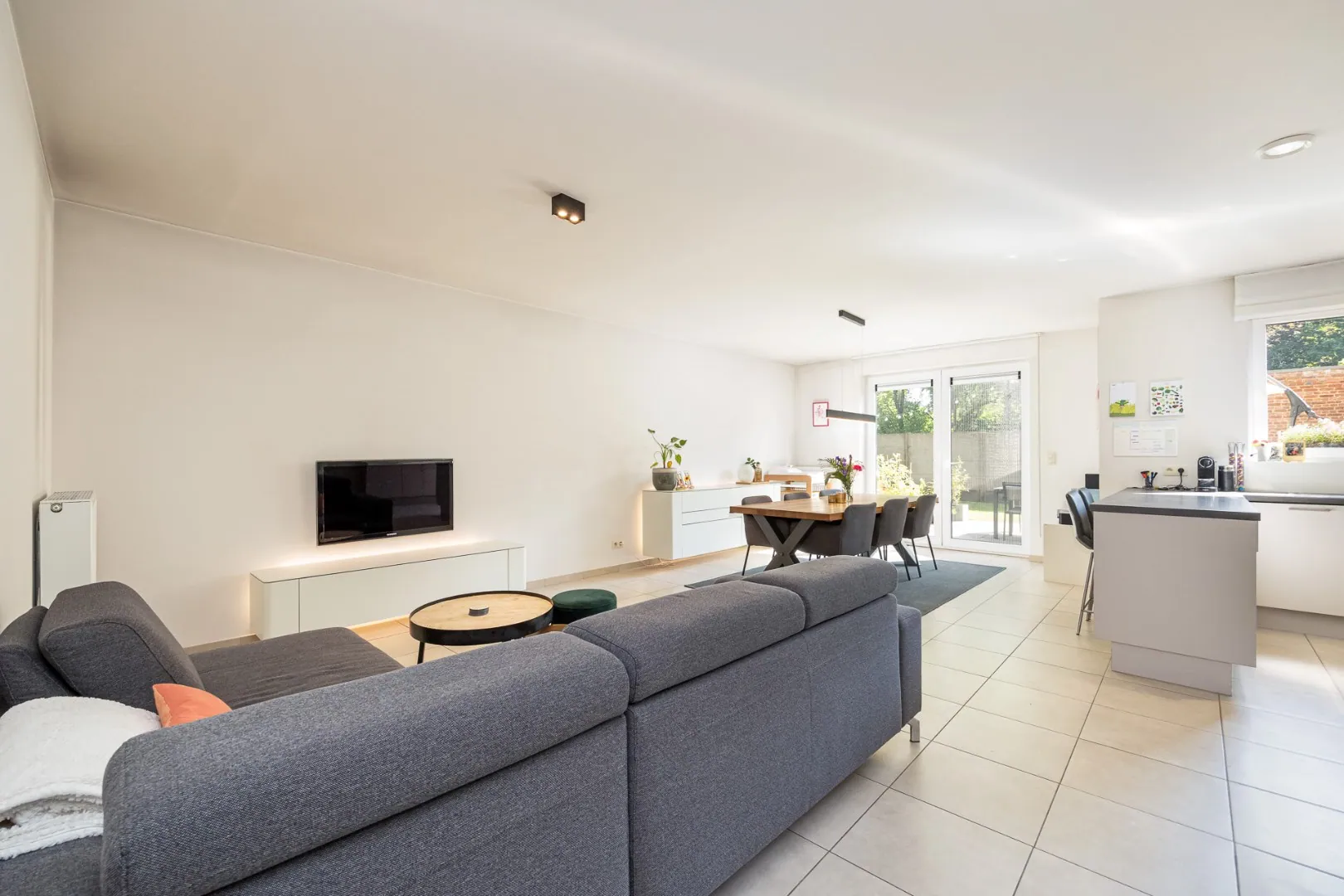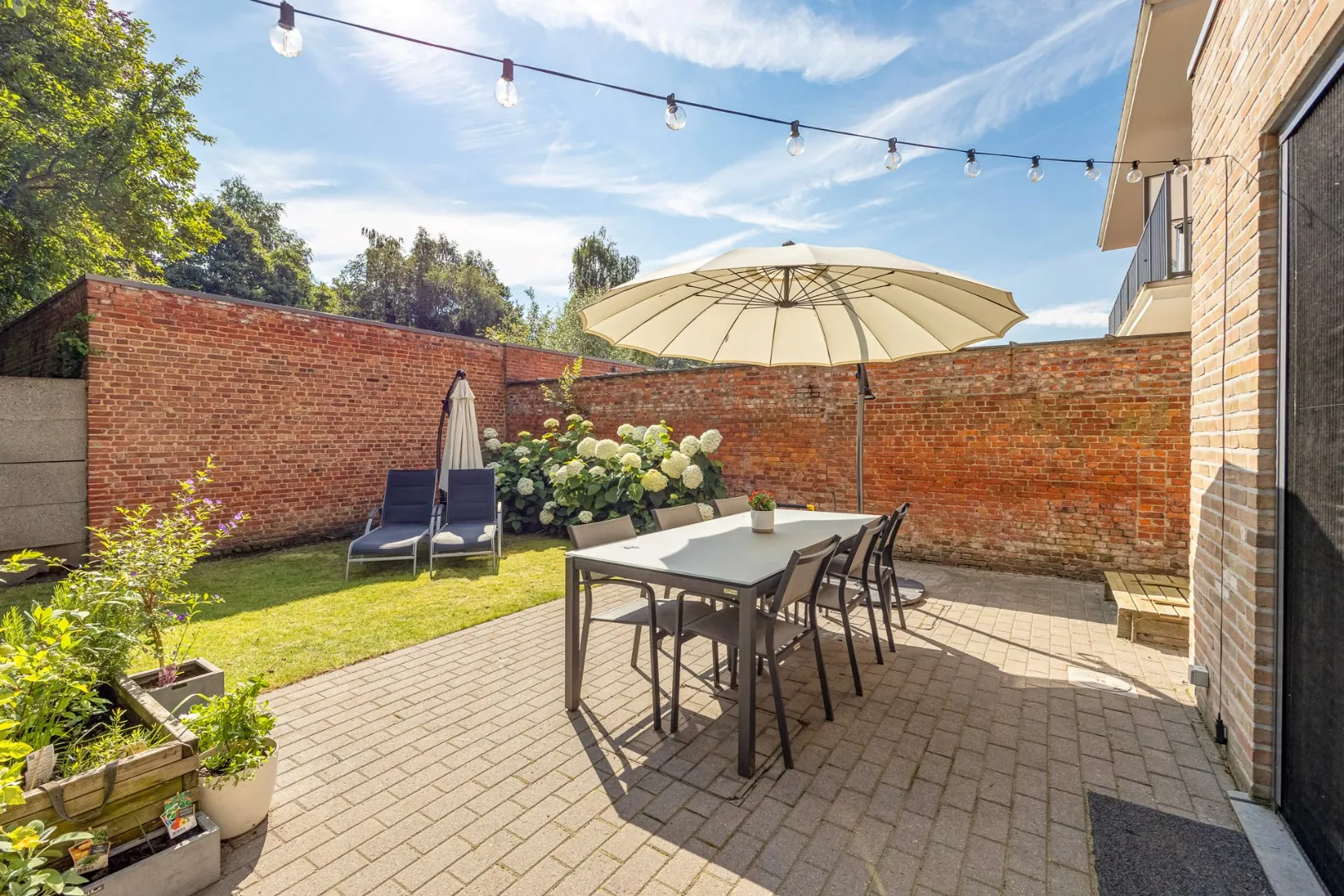 Via de dubbele raampartij betreedt men de mooi aangelegde tuin met terras en tuinberging waar men volledig tot rust kan komen.