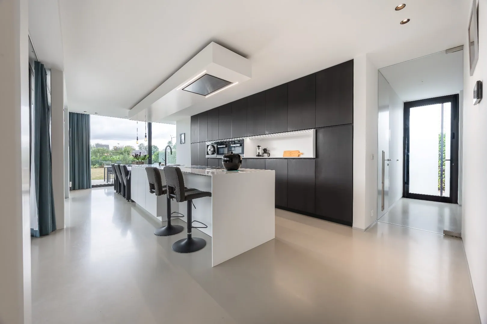 Ruime, lichtrijke leefkeuken met zicht op de tuin